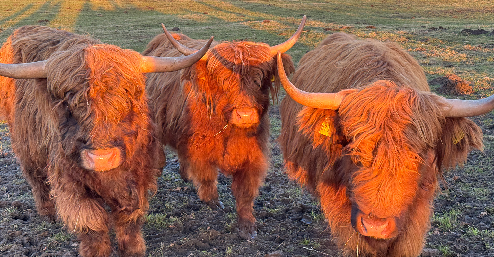Auf unseren Weiden direkt am Hof halten wir Highlandrinder. Diese Tiere sind durch Ihr langes Fell und ihre ausladenden Hörner besonders imposant und beeindruckend. Und wir sind stolz darauf, dass sie Teil unserer Tier-Familie sind.